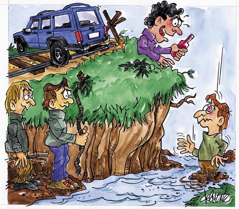 “I thought you said you crossed here!” Tim hollered at Roy.