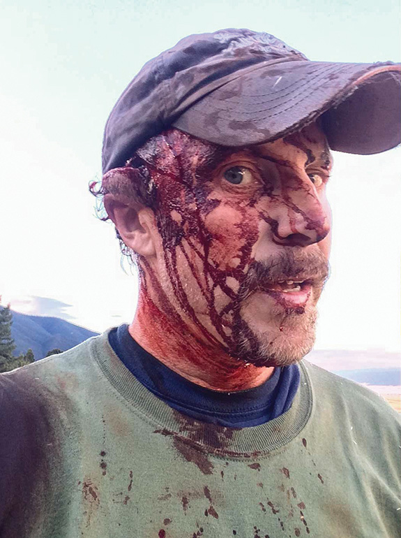 Blood was still dripping from my head wound and off both elbows, and my shirt was blood-soaked to the waist and into my pants. But a quick assessment assured me the bleeding was not life-threatening and that I could survive the 45-minute hike to the truck.