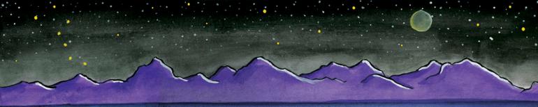 The Big Dipper circles once around the Pole Star in one 24-hour Earth rotation, which means you can also use it as a big clock in the sky to mark the passage of time. It’s spring, so the Dipper is high in the sky at the beginning of the night. (As the seasons shift, its early evening position shifts as well; in the fall, for instance, it will hang low above the horizon in the early evening.) As you plod west toward a light bubble you figure is Bozeman, you keep an eye on the Dipper; when it’s circled an eighth of the way around Polaris, three hours have gone by; a quarter of the way equals six hours. It’s said that cowpokes riding herd at night in the days of the Old West used the Big Dipper similarly as a timepiece; when the pattern had circled through the requisite arc, it was time to go roust your pardner out of his bedroll to take his shift with the cattle.