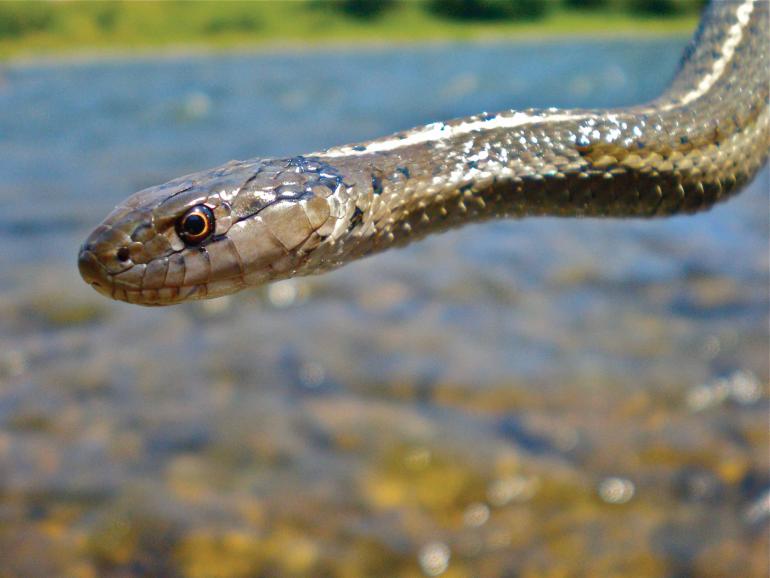 Identifying snakes can be tricky because snakes often have many subspecies. For instance, it's fairly easy to identify a garter snake, but is it a valley garter, a western terrestrial garter, or a wandering garter? It probably doesn't matter too much, but if you're interested, most western reptile guidebooks can help you identify them based on habitat, range, and color patterns. Here's a list of snakes you might encounter in and around Bozeman: