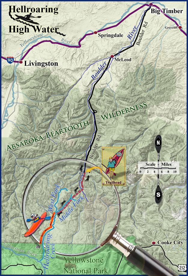 Put-in: From Big Timber drive south about 52 miles up the main Boulder road (Hwy 298) to Sheep Creek trailhead. A high-clearance 4WD vehicle and white-knuckle driving skills are required for the last five miles of dirt road (if you wanna call it a road).