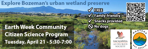 Wed Apr 15th 2026 6:45pm Misc. Events SAS Book Club Meeting Location Bozeman Cost Free Join the Sacajawea Audubon Society for a group discussion on this month's book club book. Learn More »