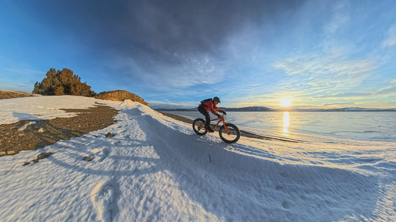 It’s in the waning days of winter, when warmer days inspire other cyclists to embark on desert pilgrimages in search of tacky red dirt, that my mind turns to the last gasps of big, wild ice riding. Canyon Ferry—the first dam on the Missouri River north of Townsend, with its over 50 square miles of surface area—is where I find a blank slate of possibilities on which to ride.