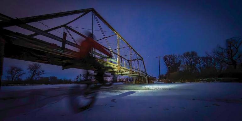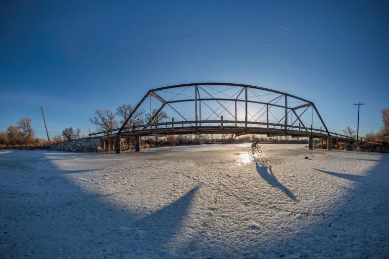 In normal years, the long, cold nights freeze the shallow ponds and river channels by late December, lasting until March at least. Unfortunately, finding dependable, ridable ice has increasingly become a fool’s errand as climate change interrupts longstanding weather patterns and makes for abbreviated “wild ice” seasons. But once tuned in to the nuance of the sport, every irrigation ditch, duck slough, and river side-channel become fair game for two-wheeled amusement. These smaller “mini-golf” features offer early-season skill-building opportunities in anticipation of bigger objectives.