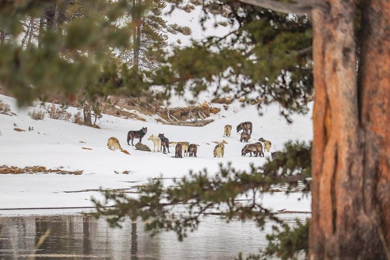 Herd animals are typically difficult to differentiate, like telling one cow elk from another—but with wolves it’s different. It made me realize that they aren’t so much a group, but a collection of individuals. From then on out, I learned to understand that a pack is something of an alliance or cooperative that work together and fulfill their duties to help the group survive. I witnessed a lot of that sort of reliance on each other throughout the year, but that ability to identify them was the most interesting thing. There was enough variation that I could quickly determine which individual was which and then start following that particular wolf through time. I think that’s what's most exciting for the people who watch wolves regularly in Yellowstone. Like me, they’re interested in the pack dynamics, the individual stories, what the history or role of a particular wolf might be, and its relationship to the pack.