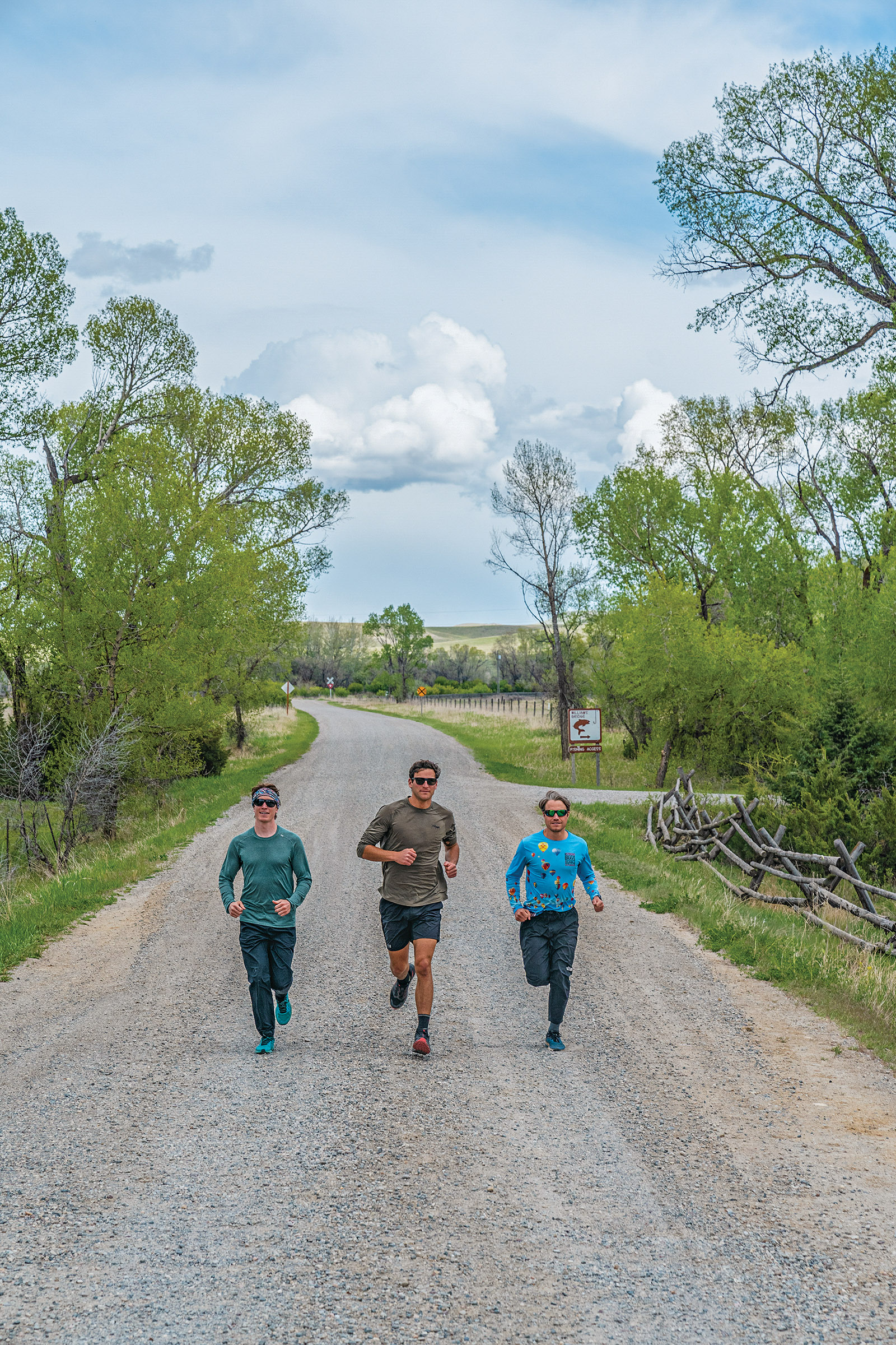 Come spring, the road surfaces are buttery and tacky to perfection, which means less impact and no dust kicked up when the occasional car passes by. Group runs are also more possible than ever out here, since you’re not forced into single-file on a narrow trail. And at this pace, the scenery can be soaked up like never before—long views of the Bridgers up Springhill, or river bottoms and open pastureland out around Axtell.