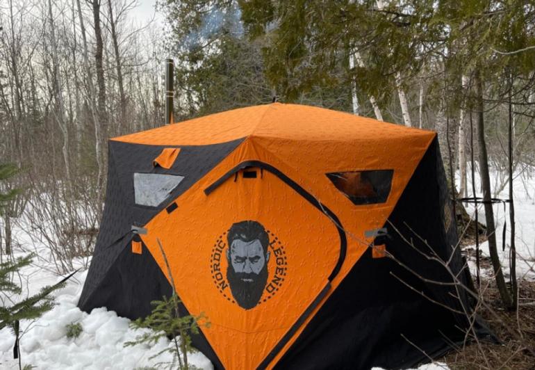 “I said something to Joe like, ‘Hey, we need to find a portable backcountry shelter,’” Bill recalls. Joe claims he searched for an “ice shanty with a stove jack” and forwarded to Bill a photo of an ice-fishing shelter known as the “Nordic Legend.” The pricepoint seemed reasonable—somewhere around $600—and Bill ordered it immediately. Joe dragged his feet a bit but did order one of his own once he laid eyes on Bill’s fancy new set-up.