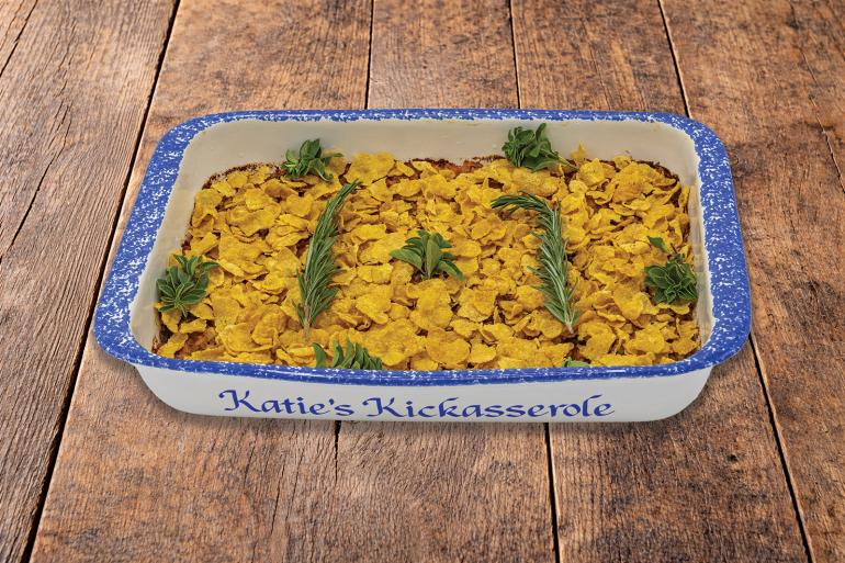 7. As an optional garnish, top with cornflakes at 45 minutes and bake for 15 minutes more.