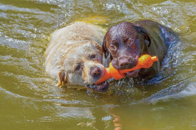 Whether you have a highly driven hunting dog or a ball-crazy family dog, many of our four-legged neighbors love to fetch. It keeps them fit and mentally stimulated. However, one common mistake I see is using abrasive materials such as rough canvas bumpers or felt-covered tennis balls, which are of particular concern. While these are cheap and readily available, they wear down teeth quickly, especially once they attract grit. Acting like sandpaper, abrasive toys can actually kill teeth or leave them thin, fragile, and prone to injury from normal play behavior. Instead, use smooth rubber toys, which go a long way in protecting your dog’s teeth.