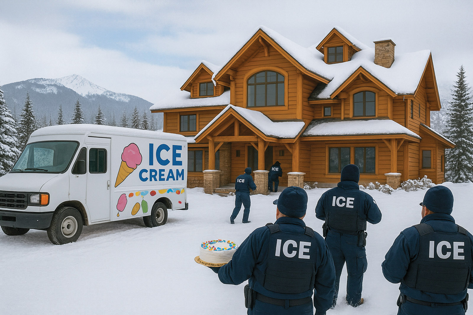 As ICE raids continued around the country this past fall, apprehending and deporting illegal aliens (along with a few legal residents), construction at the Yellowstone Club’s new indoor ocean and white-sand beach has ground to a halt. Or at least it had, for a few hours, until Lone Mountain Land Company—the syndicate comprising the YC, Crazy Mountain Ranch, Spanish Peaks, Moonlight Basin, and other real-estate holdings metastasizing in Big Sky and beyond—called up their bedfellows in Washington to stop the supposedly “un-American impediment of progress and development,” thus leading to the YC’s inaugural “ICE Cream Social.” In attendance were a diverse assortment of initially anxious and unlikely characters: ICE agents, federal legislators, various YC big-wigs, and laborers of all creeds and colors—including one Abdul Al Rahim, a Syrian exchange student who’d been “horribly and wrongfully detained while washing windows at a member’s home,” said event organizer, Collin Inphavers. Over 30 flavors of ice cream, from vanilla to dark chocolate, kept partygoers’ taste buds tantalized, with caramel and coffee getting the most attention—though attendees who opted for pistachio, chamoy, and chai were required to show documentation before receiving their sweet treats. By all accounts, the social was a rousing success, with nervous laughter, generous gift-giving, a few veiled threats, and hearty handshakes all around. Said Abdul of the event, “They all very nice people. ICE cream man even give me new wash job! What is ‘bidet?’”
