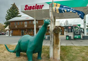Halloween is a time for mischief, and last year Bozeman delivered. Around 3:30am, the 270-pound fiberglass dinosaur from the Sinclair gas station on Bridger Drive was carried away and hauled to the top of the M, where it was discovered shortly after the sun came up.