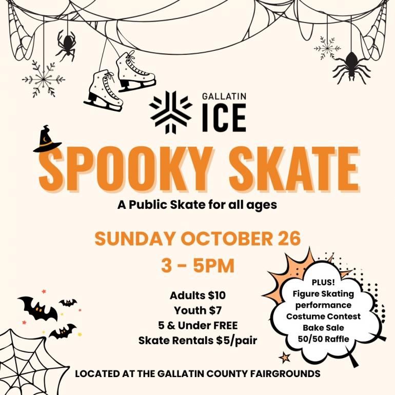 Get into costume and get spooky at the Gallatin Ice public skate. There'll be a costume contest, bake sale, raffle, and figure skating performance.