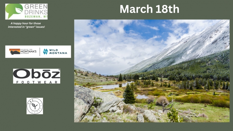 An evening happy hour for those interested in discussing sustainability and green issues with like-minded community members. Be sure to bring a mug for free beer and appetizers, courtesy of Wild Montana, Business for Montana Outdoors and Oboz Footwear, who are hosting the event at their office.