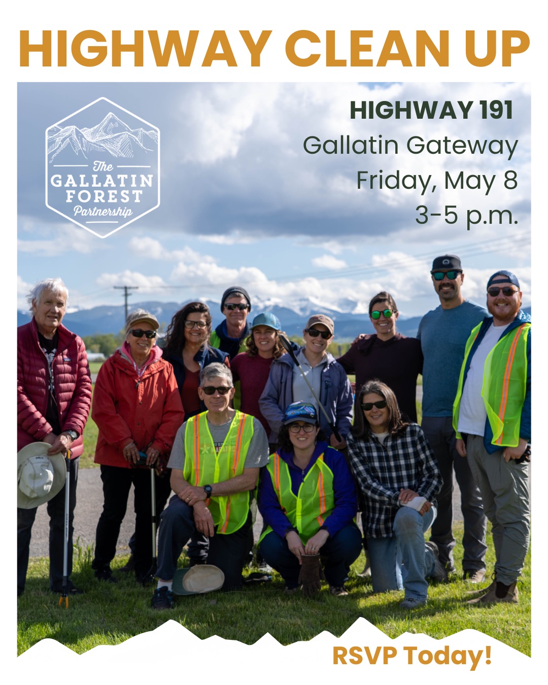 Join the Gallatin Forest Partnership and pick up the trash flying around Highway 191. The more hands, the cleaner the highway will be.