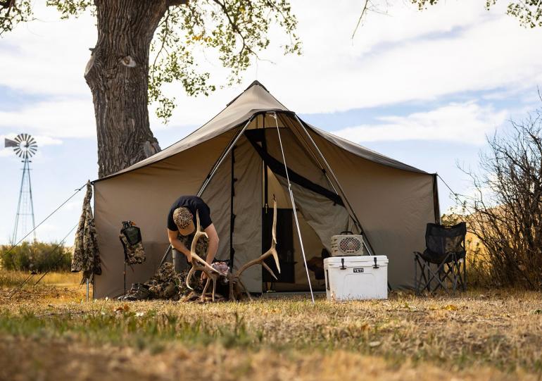 For a comfy elk camp, nothing beats a canvas wall tent—except maybe the new Bridger Tent from Montana Canvas. Its five-foot walls and spacious interior give you all the benefits of a traditional tent, but the lightweight polyester fabric and aluminum poles pack up into a single bag, so it's much less difficult to tote around, let alone set up and take down. What's more, the Bridger's got a few things a typical canvas tent doesn't—most notably, a 10-foot peak ceiling height, a sewn-in floor, and a lower price tag. Which of course means way more headroom, way fewer unwanted critters, and plenty of extra cash for other indulgences.
