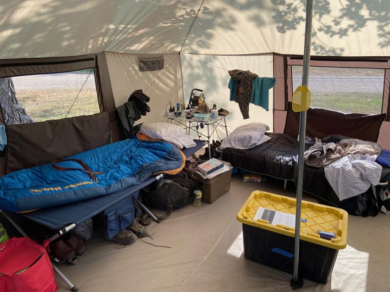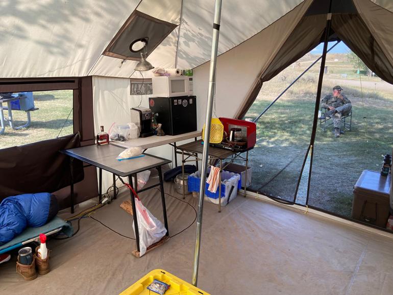 Three screened windows offer ventilation without bugs, and small access ports allow extension cords from a generator or when camped in a powered campground—as I and my two friends were during archery season this year. Every day we returned to camp, we appreciated the Bridger's roomy interior and thoughtful design. Each of us had his own space, plus our community pantry in one corner and ergonomic kitchen in another. That left plenty of room for counterspace and camp chairs, creating comfy environs for dinner & drinks after a long day in the field.