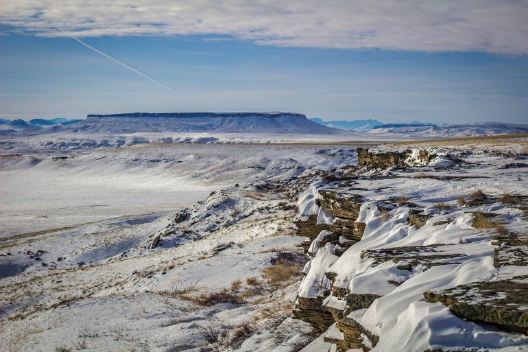 Next up is Great Falls’ other nearby offering: First Peoples Buffalo Jump State Park. The park is complete with a 6,000-square-foot visitor center & museum detailing the Indians’ use of the mile-long cliff to drive herds of bison to their ultimate demise. At the base of the cliff, nearly 18 feet of compressed bison remains are piled up in the soil, and the interpretive trails allow visitors to walk the grounds of what is possibly the largest bison jump in North America. It’s a great place to visit with family, especially in winter—the museum can entertain those less-suited to the cold or lacking in mobility, there are fewer guests on the whole, and you don’t have to worry about your non-Montana kin (or dogs, for that matter) having an accidental run-in with a rattler.