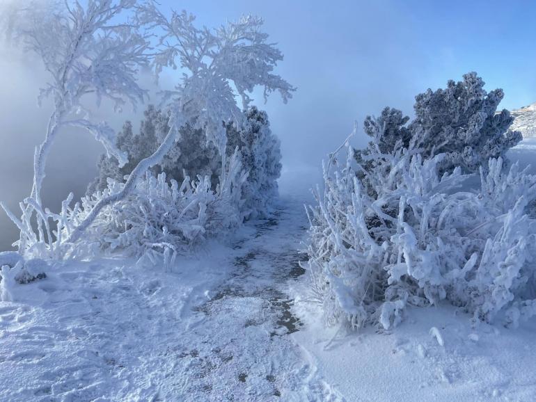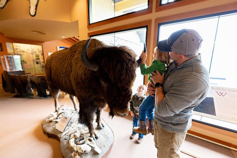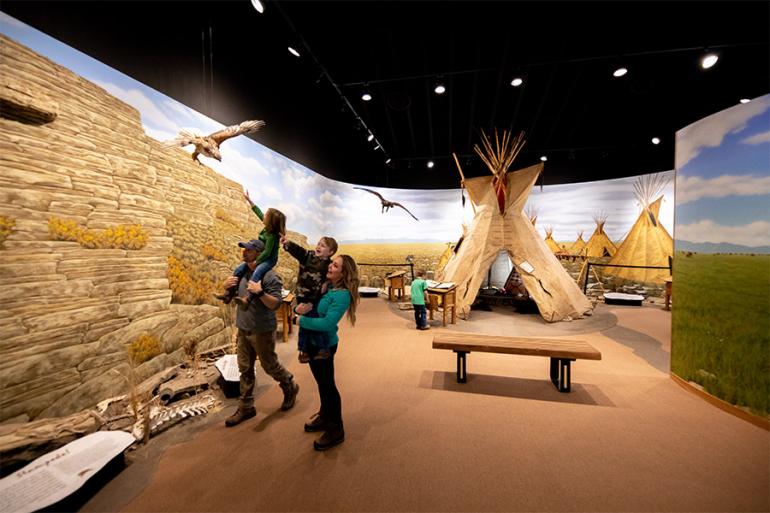 Similarly, First Peoples Buffalo Jump State Park takes on a different character in winter. Snow highlights the contours of the plains and throws off the scale of the landscape. With the earth covered, the sea of grass is replaced by an endless arctic expanse. Visitors can better understand how bison once moved across this country and how the sandstone cliff functioned as part of a larger hunting system.