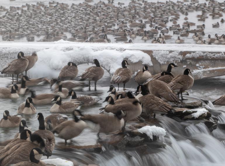 In winter, Giant Springs State Park offers one of the most straightforward examples of that connection. While much of the surrounding landscape freezes, the springs continue to flow at a steady temperature year-round, sending clear, cold water into the Missouri River. Snow along the riverbanks makes the contrast even more noticeable, and the park’s paved paths remain accessible for walking and wildlife viewing.