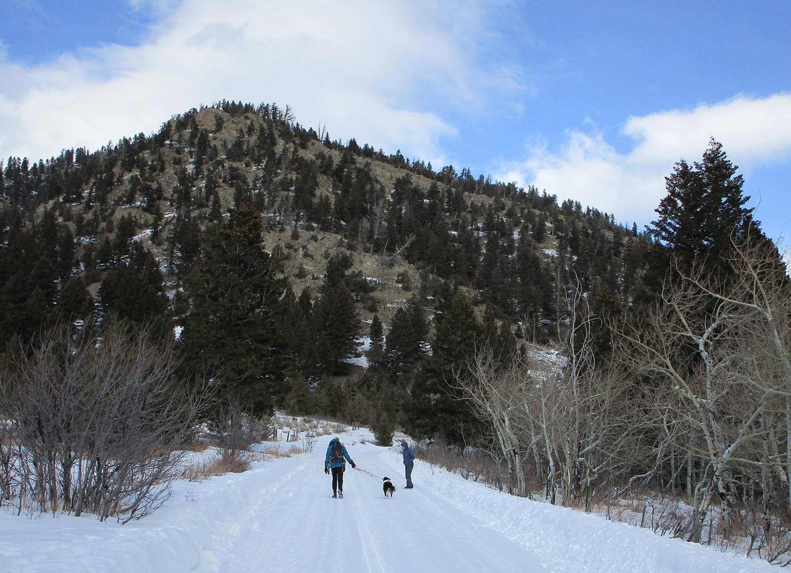 However, the short length of road between Bridger Canyon Rd. and the Stone Creek Trailhead is a permanent legal easement and thus fair game. The views of the Bridgers are fantastic and the forest and foothills along Stone Creek are pristine. It's great for a quick lunch lap, or to give the dog some exercise after you spent a day on the slopes at Bridger. Enjoy yourself, be courteous, stay on the side of the road to let vehicles pass, and report any harassment to authorities.