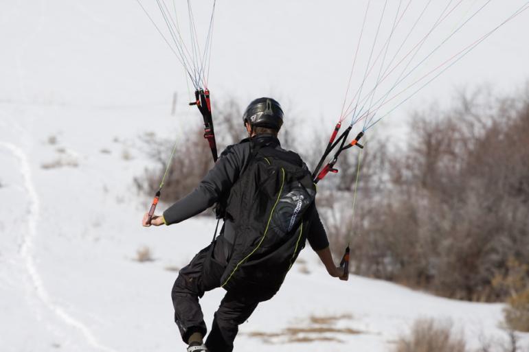 Wiping snow cones out of my sunglasses, I waited for a comment from Andy. Thankfully, he didn’t say a word. I gathered up the wing and its cords in a clumsy pile and started the long walk across the snowy field to the base of the hill. By the time we’d all made it back to the ridge, it was time to call it quits for the day. That was fine by me.
