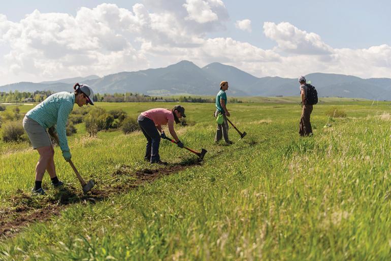 Bozeman’s community-supported trail work begins each year with National Trails Day, on the first Saturday of June, when hundreds of locals join GVLT to get the trails in shape for a busy summer season ahead. Volunteers shovel dirt, bag trash, and pull weeds all over town. The commitment and enthusiasm are inspiring, says Parsons, and “it kicks off a summer-long investment in trail work.”